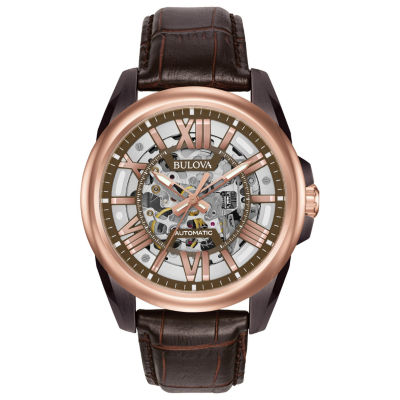 Bulova Sutton Mens Automatic Brown Leather Strap Watch 98a165 Jcpenney