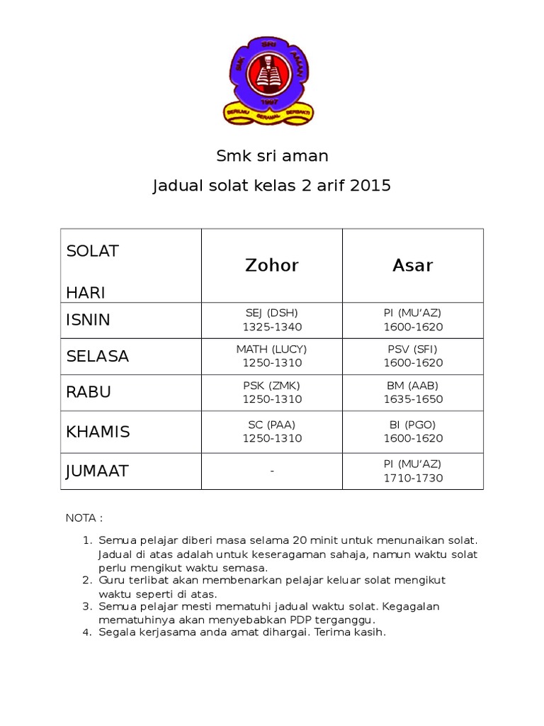 Jadual Waktu Solat Sekolah Rendah Islam Aman Kota Bharu Facebook
